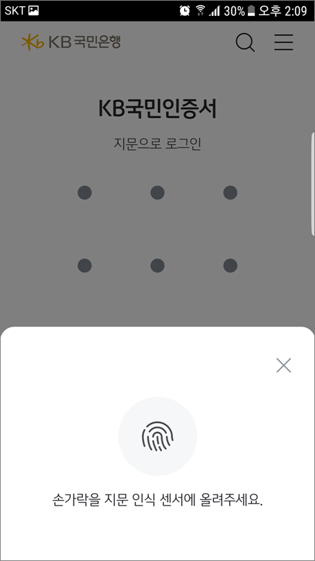⑪. 지문으로 KB스타뱅킹 로그인 가능합니다.