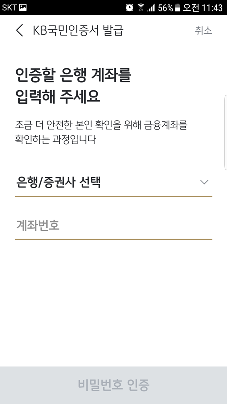 국민은행 KB국민인증서 발급 방법입니다.