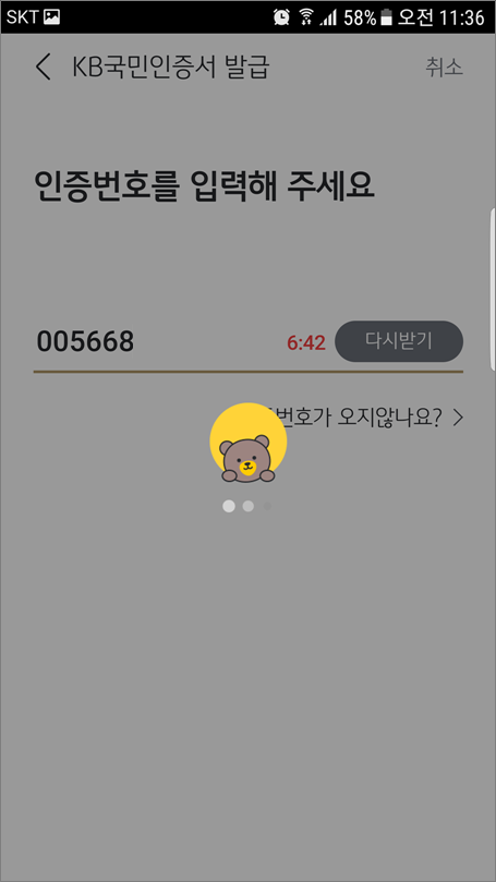 ⑧. 인증번호는 자동으로 입력되고 다음 절차로 자동으로 진행됩니다.