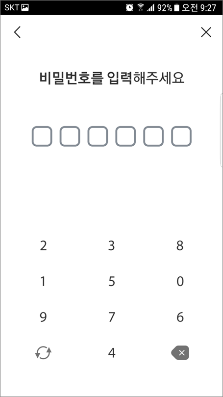 ①. 로그인 방법이 지문으로 되어 있으면 X 선택합니다.