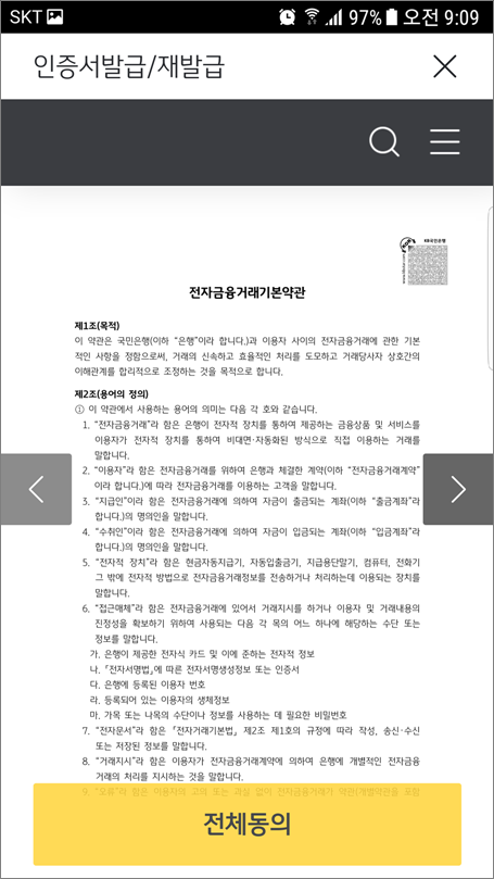 국민은행 KB국민인증서 발급 방법입니다. KB스타뱅킹에 지문, 패턴으로 로그인하기 위해서는 KB국민인증서를 발급받아야 합니다. KB국민인증서 발급 절차는 본인명의 휴대폰 인증 > 신분증 원본