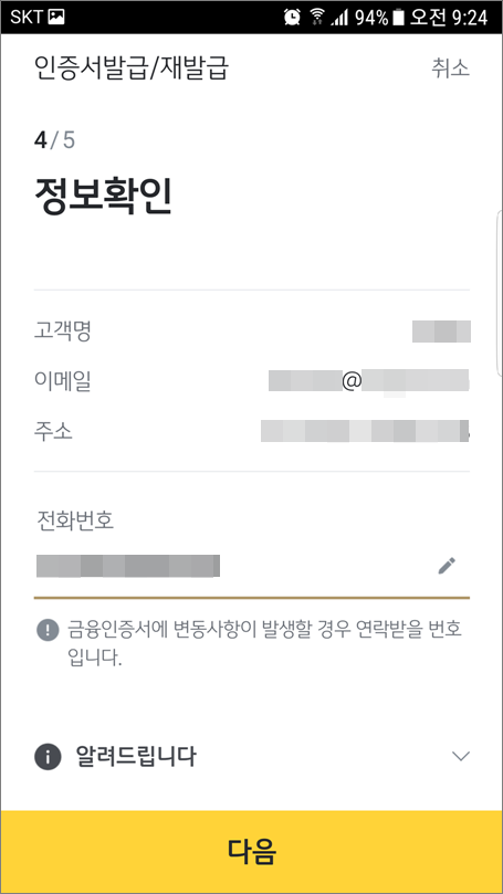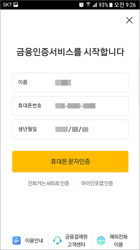 연락처 본인인증은 자동으로 확인하기 때문에 번거로운 절차가 따로 없습니다.