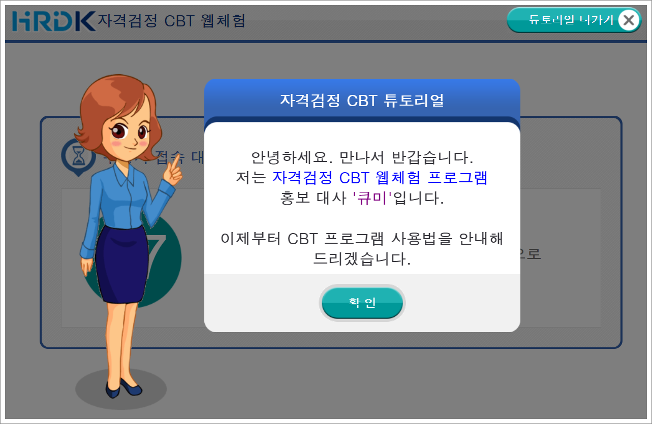 CBT시험 웹체험은 수험자 교육 시간에 연습하는 CBT시험 연습과 동일합니다.