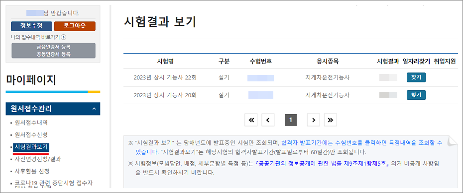 ⑦. 큐넷 Q-net에서 시험 다음날 오전 9:00 이후 점수 및 합격여부 확인 가능합니다.