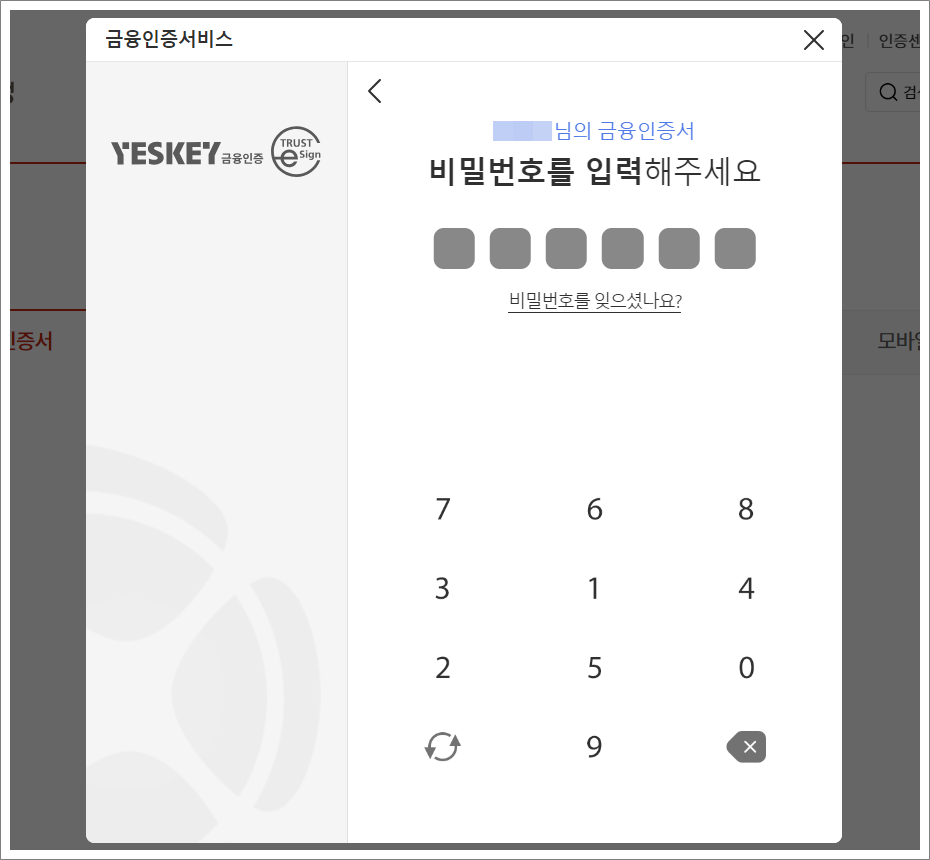 키보드 보안프로그램을 설치하지 않은 경우 마우스입력기를 사용해야 합니다.