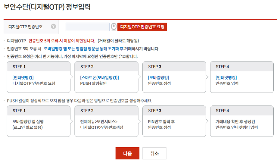 ⑭. 부산은행 디지털OTP 가지고 있으면 디지털OTP로 인증해야 합니다.