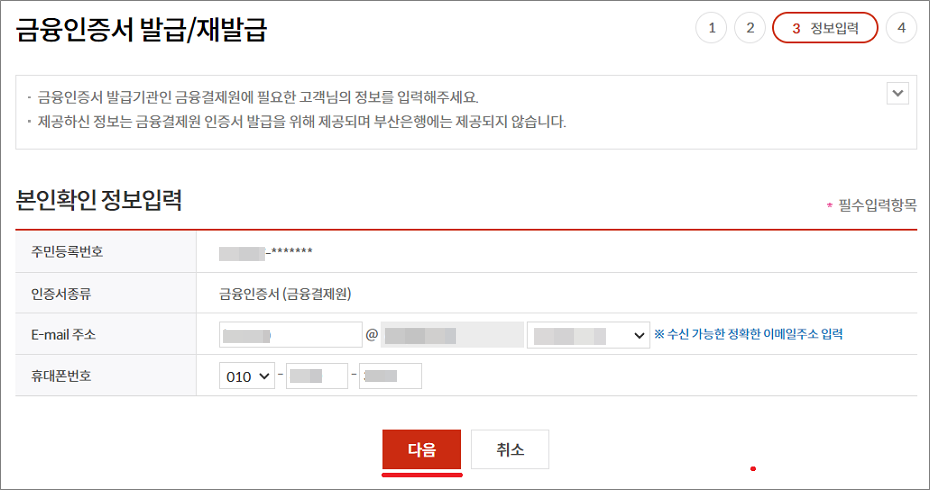 부산은행 금융인증서 발급방법은 본인확인, 추가인증 서비스, 보안수단 인증 순서로 진행됩니다.