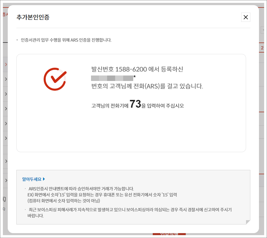 2. 추가인증서비스는 ARS 인증 또는 단말기 지정 서비스 중에서 선택합니다.