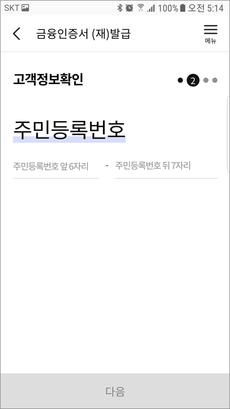 ⑤. 주민등록번호 입력하고 다음 선택합니다.