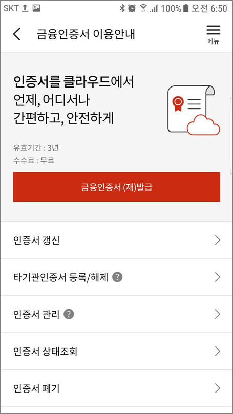 금융인증서 발급은 무료이고 유효기간은 3년입니다.