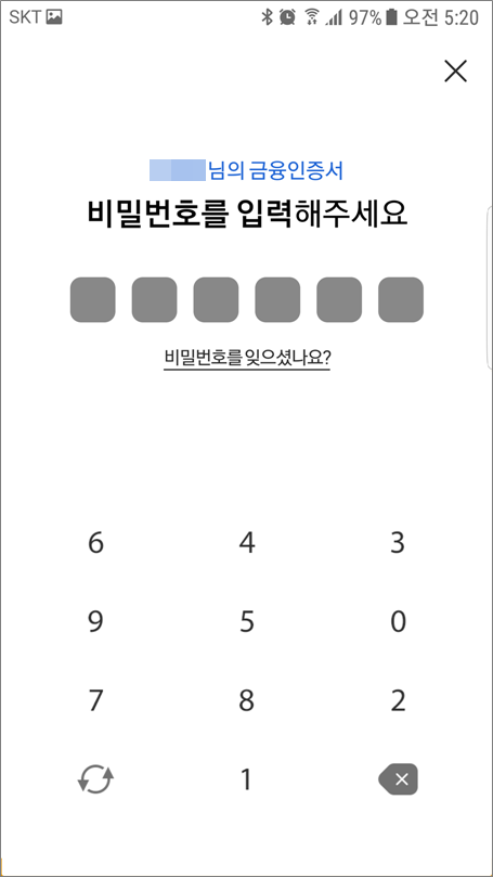 금융인증서 선택합니다.