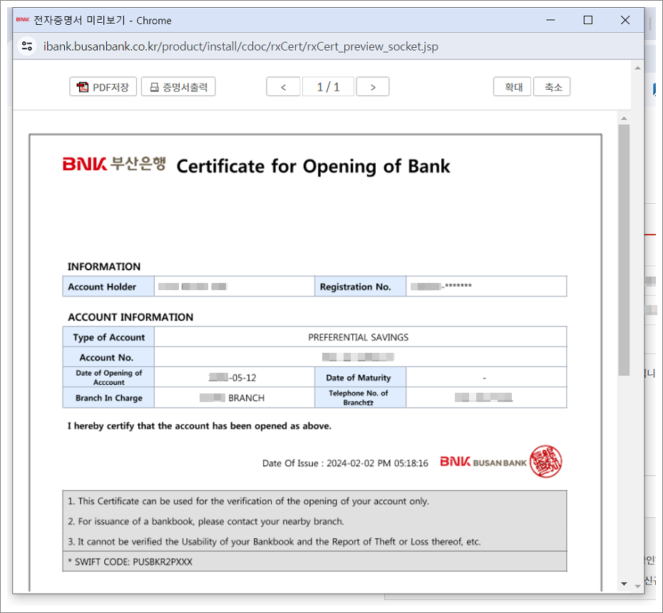 ❉. 부산은행 계좌개설확인서 발급방법. (PC. 국문. 영문)
