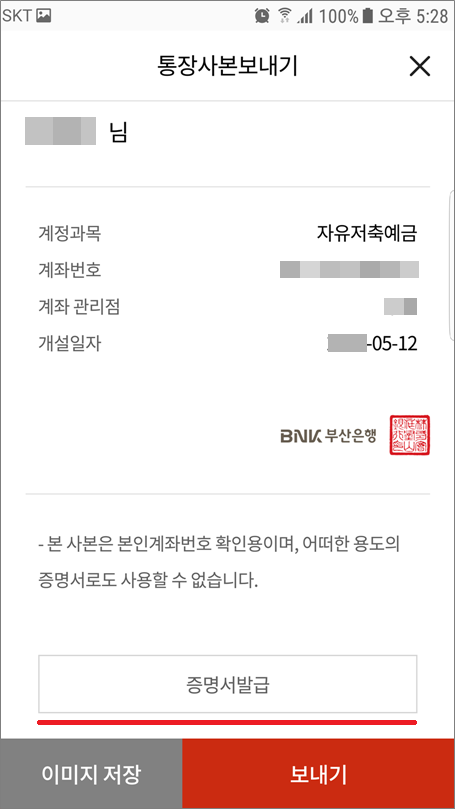 ❉. 부산은행 계좌개설확인서 발급방법. (모바일. 국문. 영문)