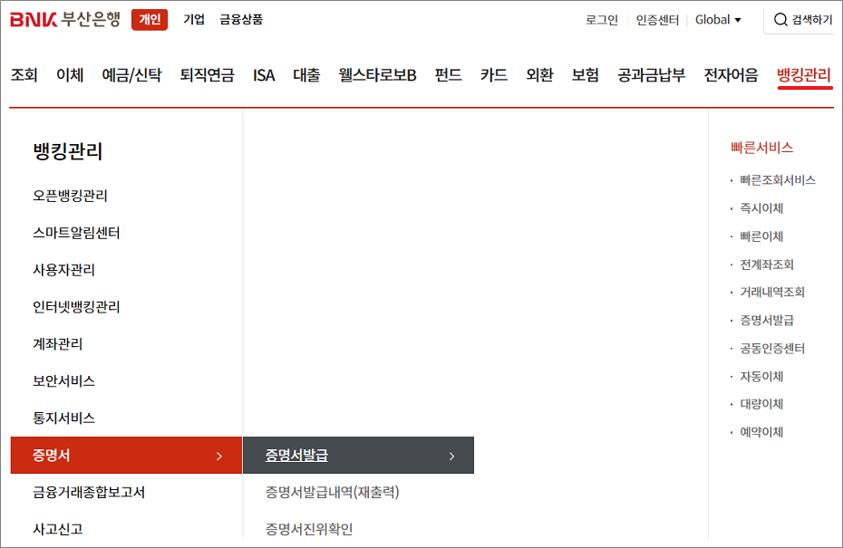 ❉. 부산은행 통장사본 발급방법. (PC. 국문)