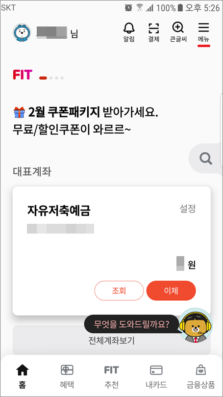①. 개인뱅킹 선택합니다.