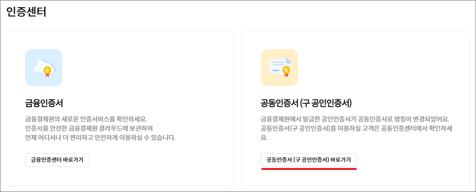 ②. 공동인증서(구 공인인증서) 바로가기 선택합니다.