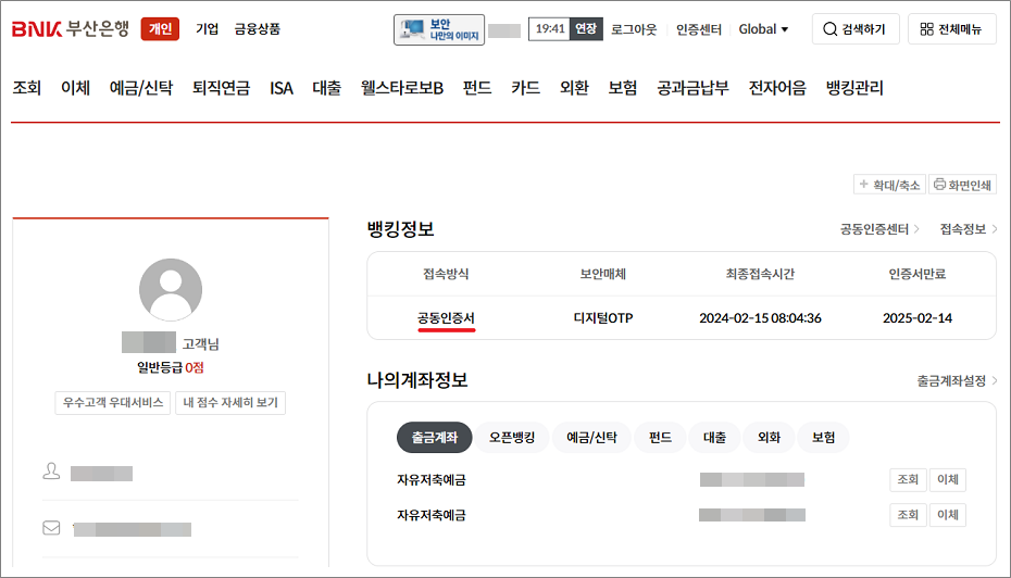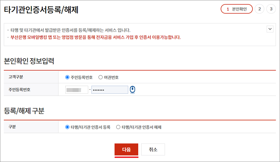 ❉. 부산은행 타행/타기관 공동인증서 등록 방법.