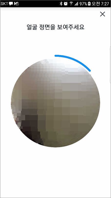④. 셀카 찍는다는 느낌이고 파란색 원이 움직이면서 자동으로 촬영합니다.