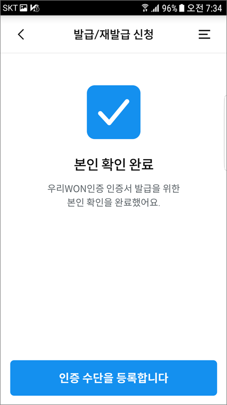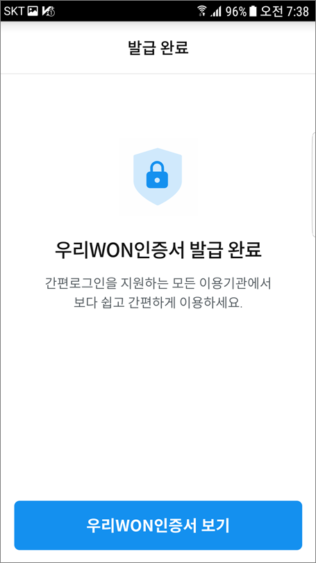 ⑬. 우리WON인증서 발급 완료가 되었습니다.