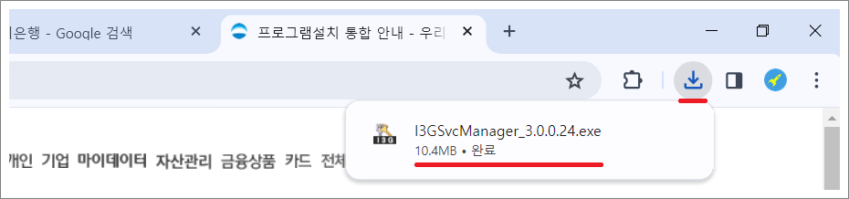 ⑤. 다운로드를 선택하고 크롬 우측 상단의 다운로드 아이콘을 선택해서 설치합니다.