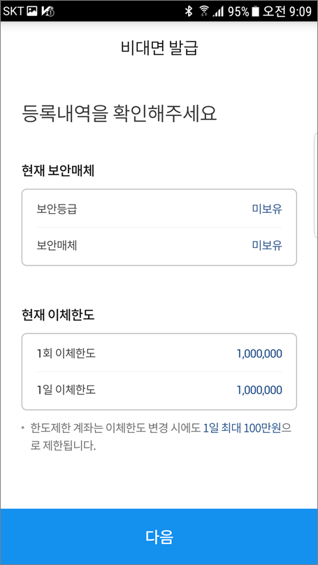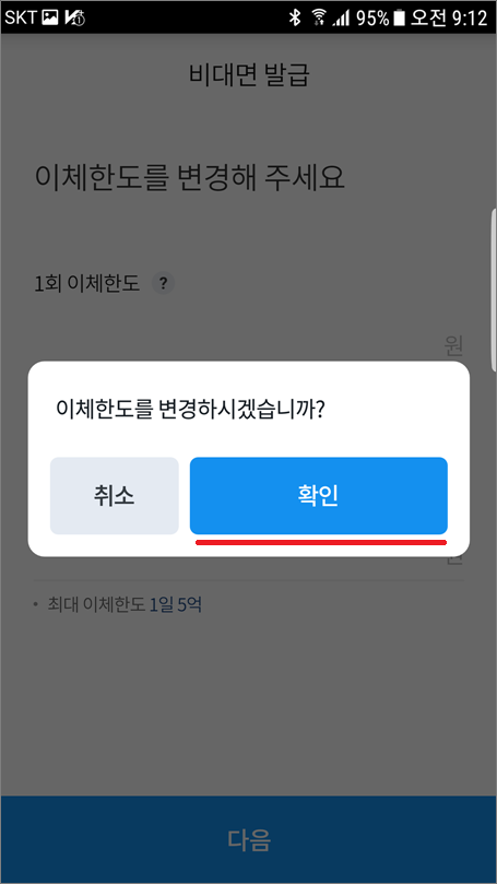 ⑪. 이체한도 변경내용을 확인하고 다음 선택했습니다.
