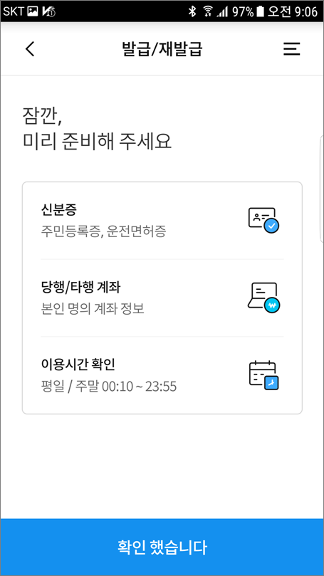 발급/재발급 차이는 약관동의 제외하고는 동일합니다.