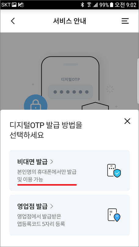 ⑤. 디지털 OTP 발급을 받으면 기존에 사용하는 보안카드, 실물 OTP는 사용하지 못합니다.