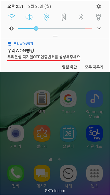 ④. 알림을 선택하면 바로 디지털OTP로 이동됩니다.