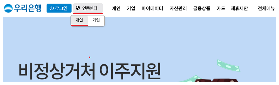 ①. 인증센터에서 개인 선택합니다.