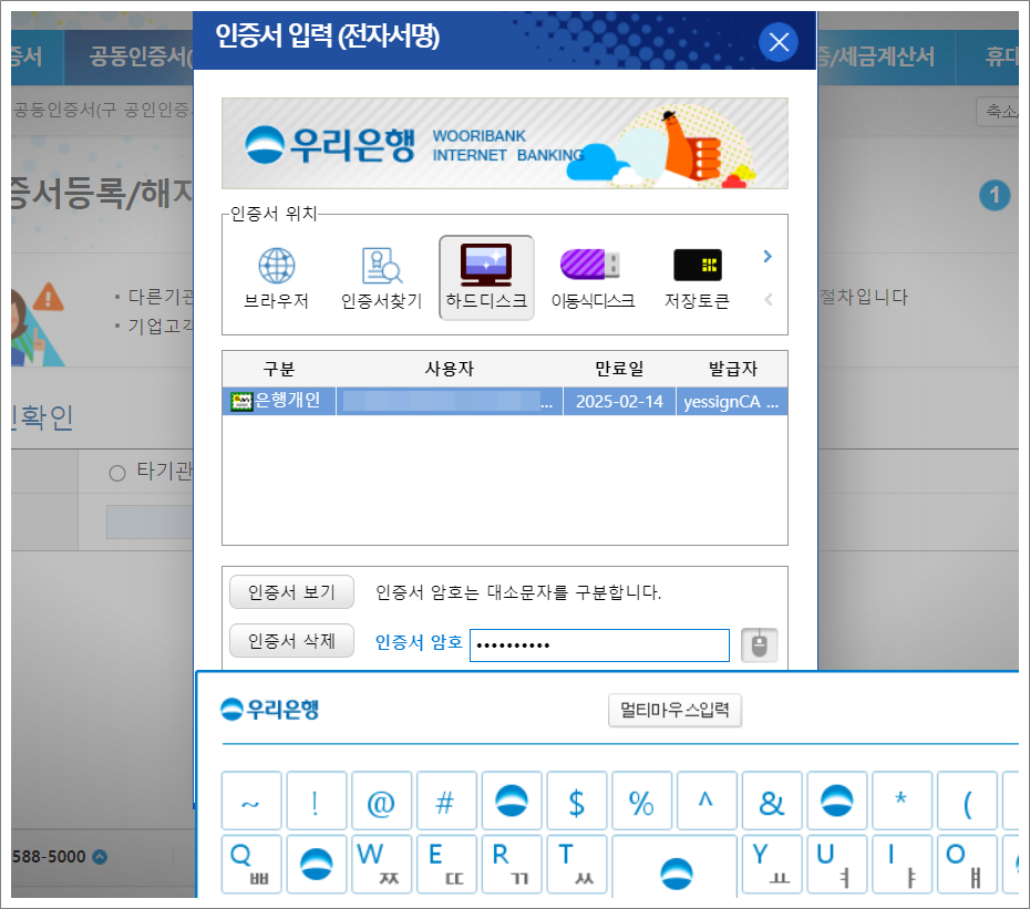 ❉. 우리은행 공동인증서 타기관 인증서 등록 방법.