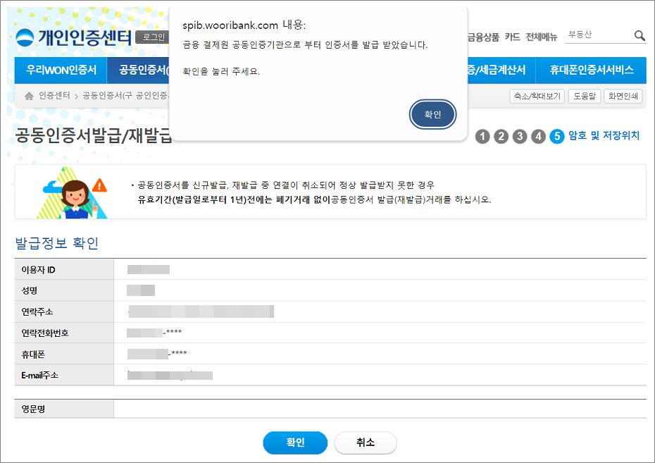 ⑬. 우리은행 공동인증서가 정상적으로 발급된 것을 확인할 수 있습니다.