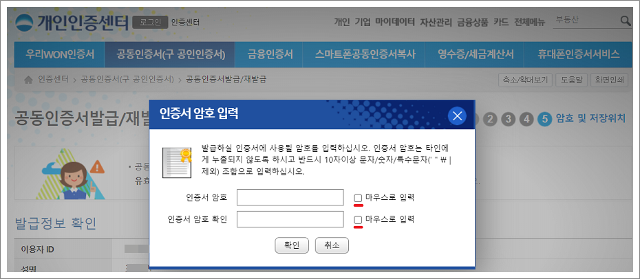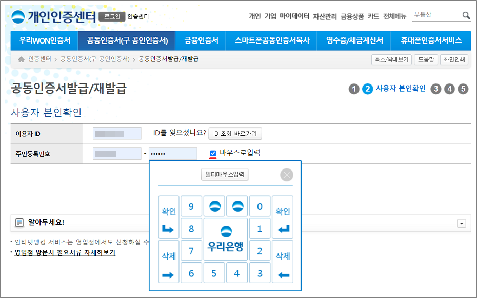 키보드 보안프로그램을 설치하지 않은 경우 마우스로 입력에 체크하고 멀티마우스로 입력해야 합니다.