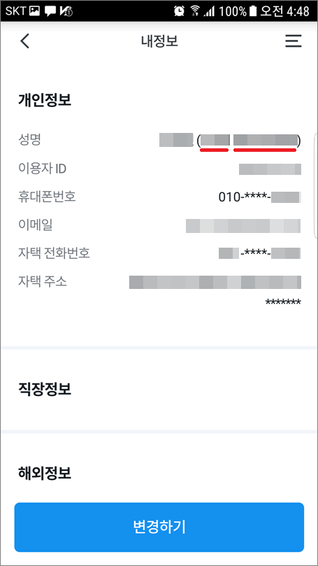 ③. 개인정보에서 변경된 영문이름을 확인할 수 있습니다.
