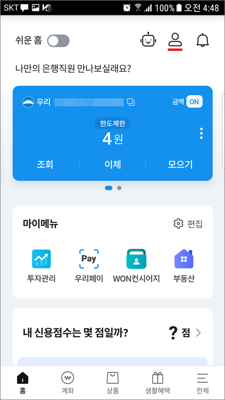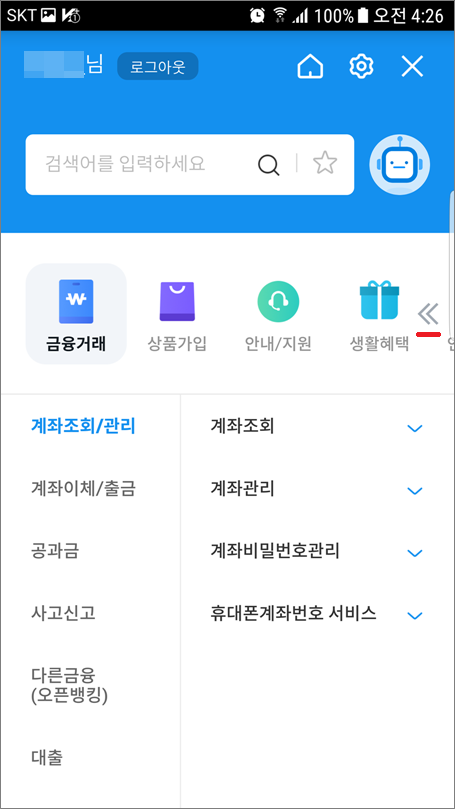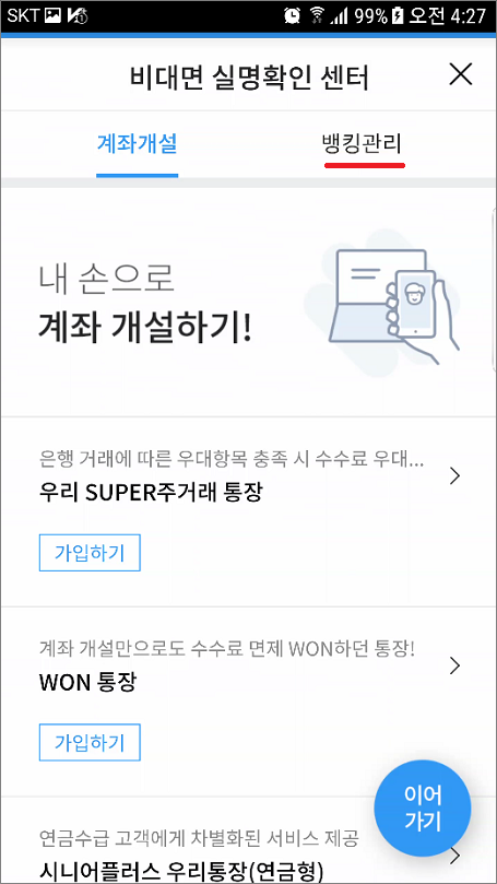 ⑤. 뱅킹관리에서 하단으로 이동합니다.