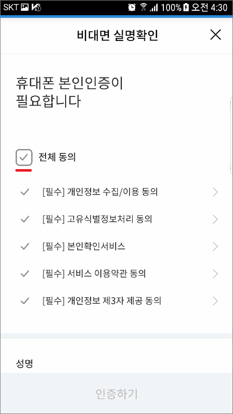 ⑨. 전체 동의 체크합니다.