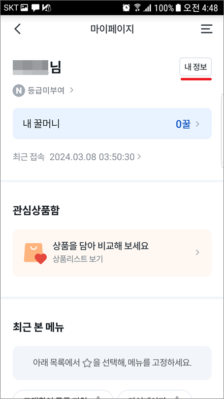 ②. 내 정보 선택합니다.