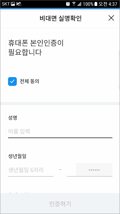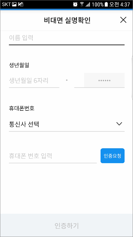 ⑪. 통신사 선택하고 휴대폰 번호입력해서 인증요청 합니다.