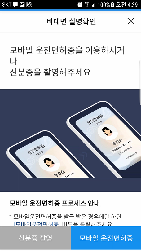 ⑫. 신분증 촬영 및 모바일 운전면허증 인증입니다.