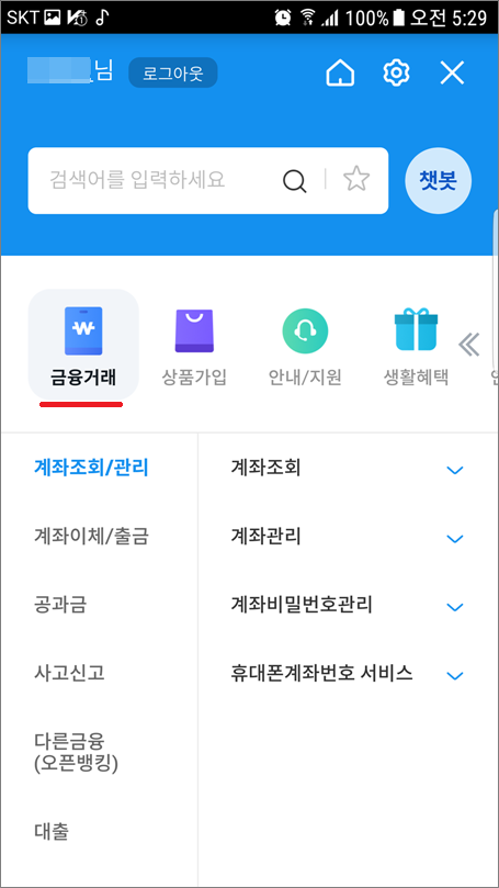 ②. 금융거래에서 하단으로 이동해서 외환/환전 메뉴를 찾습니다.