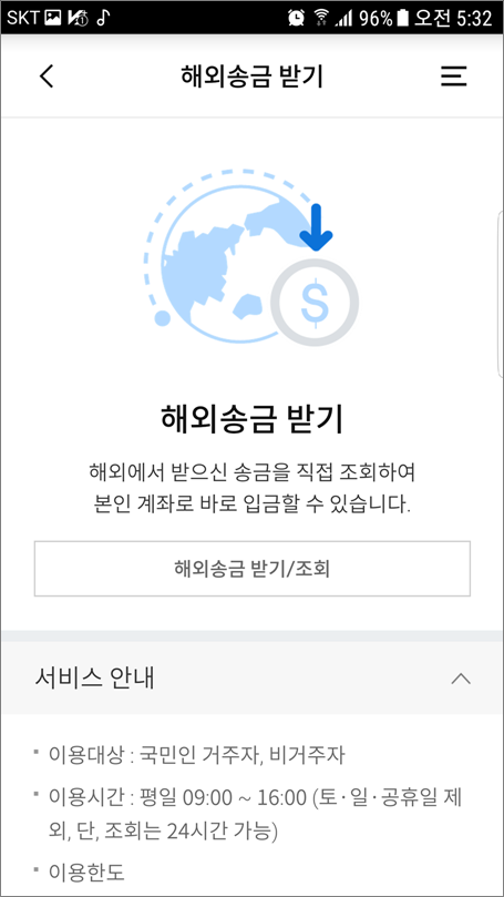 ⑥. 해외송금 받기 정보 안내를 선택합니다.