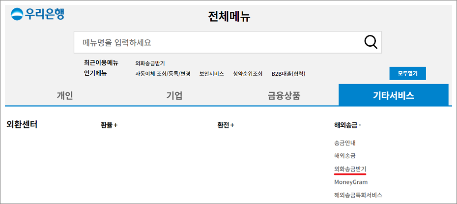 ④. 외화송금받기 선택합니다.