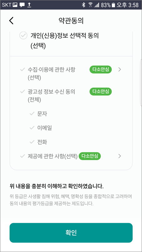 ②. 필수, 선택 부분을 확인하고 확인 선택합니다.
