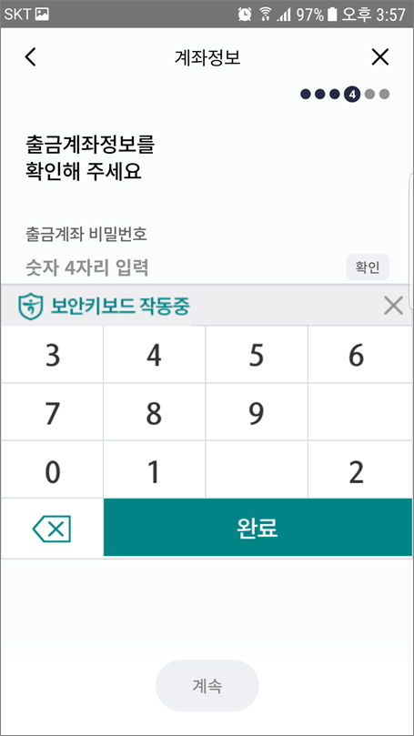 ⑧. 출금계좌 비밀번호 4자리 입력합니다.