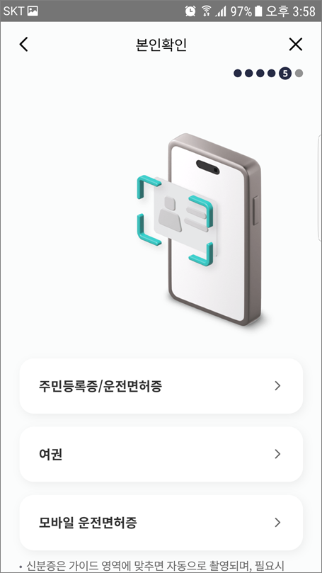 ⑥. 주민등록증, 운전면허증, 여권은 신분증 촬영을 위해서 준비합니다.