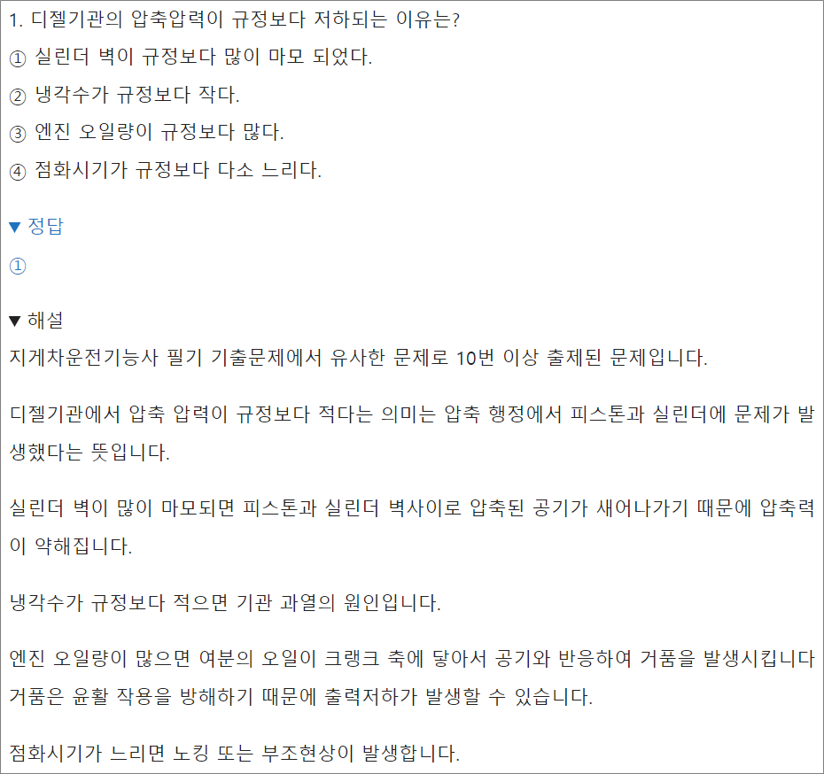 지게차운전기능사 필기시험 교재는 지게차 필기 기출문제에서 약간의 해설이 포함된 내용이라고 보시면 됩니다.
