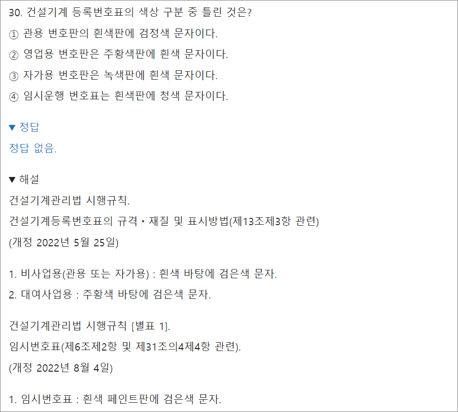 안전보건표지, 교통안전표지를 제외하고 질문과 정답이 동일한 문제는 몇 문제 출제되지 않습니다.
