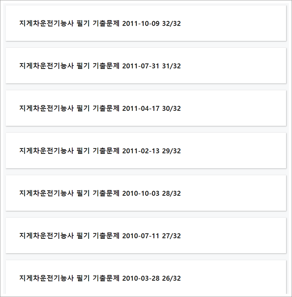 지게차운전기능사, 굴착기운전기능사 필기시험을 기출문제로 공부하고 85점, 95점으로 합격했습니다.