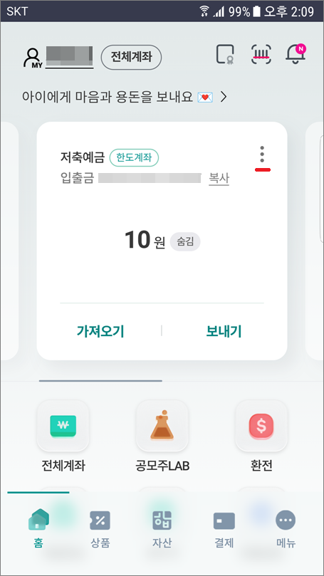 ⑩. 더 보기에서 계좌정보보기 선택합니다.