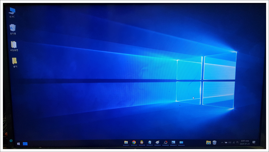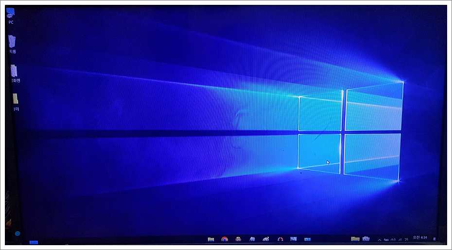 ①. 컴퓨터와 TV가 연결되었지만 해상도 문제로 컴퓨터 화면이 TV화면에서 벗어난 모습입니다.