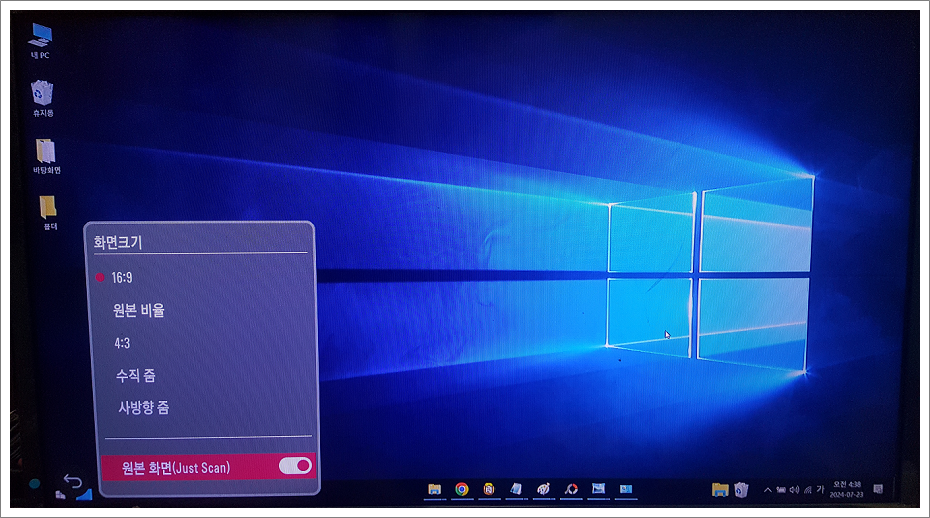 LG TV메뉴에 들어가면 원본화면(Just Scan)이 활성화됩니다.